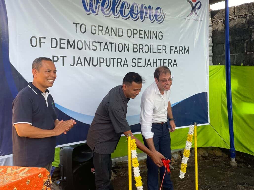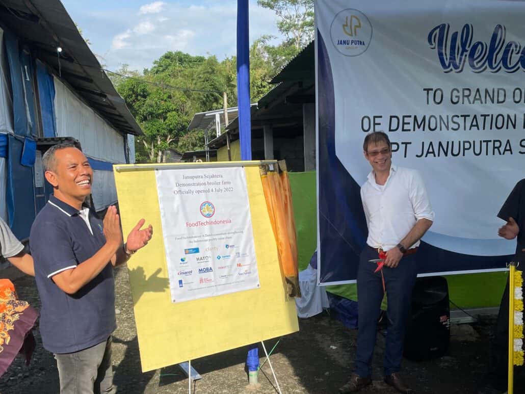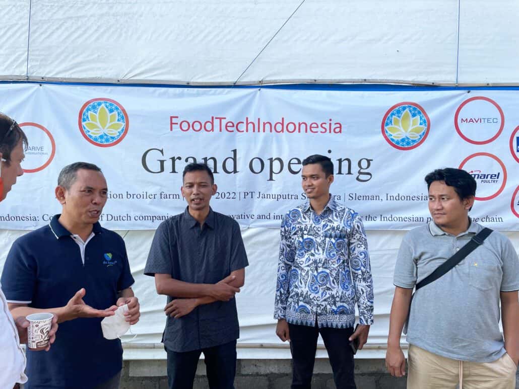 In attendance of the Mr. Joost van Uum, Agricultural Counsellor of the Embassy of the Kingdom of the Netherlands for Indonesia, Malaysia, and Singapore and representatives of the FoodTechIndonesia consortium, the grand opening of the demonstration broiler farm at the premises of PT. Januputra Sejahtera farm in Sleman, Central Java, took place on Monday 4 July 2022.
