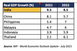 India is expected to wield its position as a regional force in South Asia, with an expected GDP growth rate of 9.5% in 2022 (even though it is a ‘trimmed down’ forecast, it continues to be one of the highest country-specific GDP growth forecasts by the IMF – making India a rapidly growing country, not just in Asia but also globally).