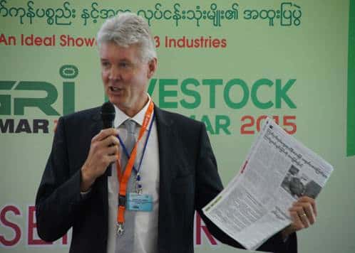 Mr. Gerard Wellenberg of GD Animal Health presenting at Myanmar Livestock Expo in Yangon.