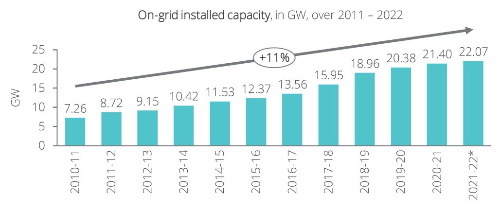 As of 2022, Bangladesh’s total power generation capacity (on-grid and captive sources) is 25.5 Gigawatt (GW), and it has grown significantly over the past five years, and this has been a major cause of the increase in GDP. The country has also achieved a 98% electrification rate in the year 2021, bringing the majority of the population under electrification.